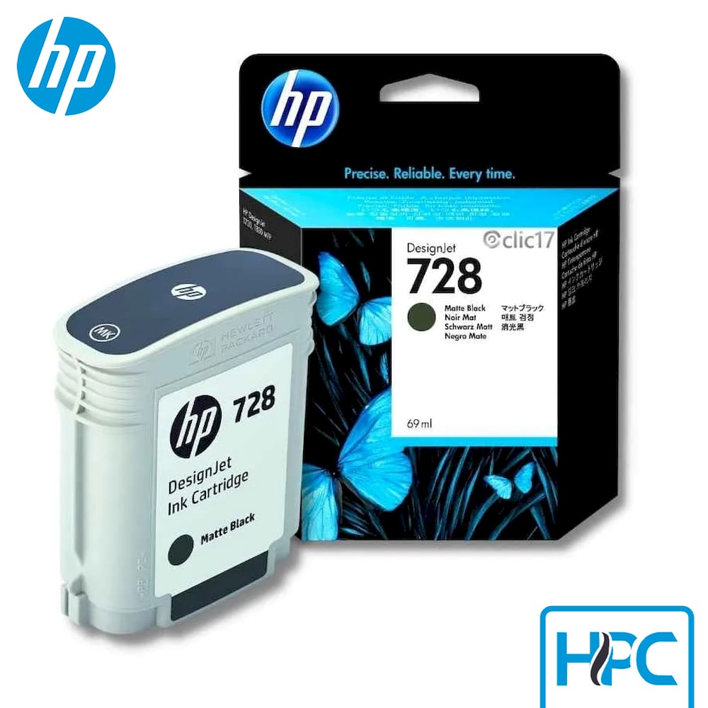 Cartucho de tinta HP 728 original, disenado para ofrecer un rendimiento constante en color negro. Garantiza impresiones de calidad profesional y protege tu plotter.