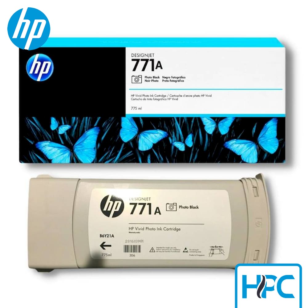 Cartucho de tinta HP 771A original, disenado para ofrecer un rendimiento constante en color PHOTO BLACK. Garantiza impresiones de calidad profesional y protege tu plotter.